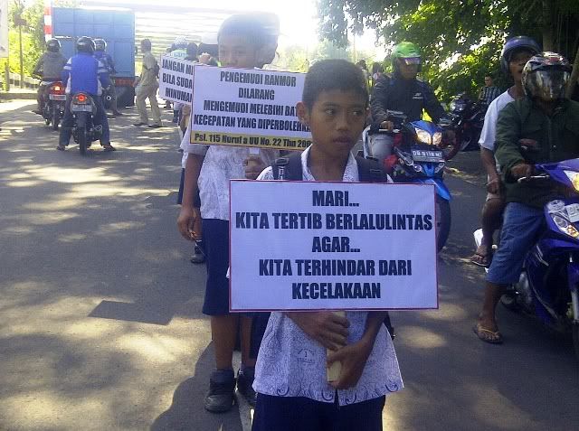 Anak Sekolah Kampanye Tertib Lalu Lintas (FOTO)