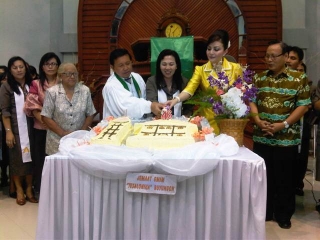 Setelah itu, acara perayaan HUT dilaksanakan di dalam gedung gereja, untuk mengikuti ibadah buka dipimpin oleh ketua Sinode GMIM Piet Tampi.