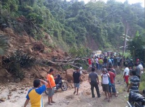 Akibat longsoran, kendaraan dari dua arah tertahan di jalur utama dari