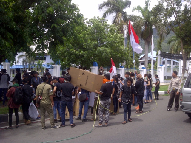 Massa dari tim Relawan pemadaman Hutan Tangkoko usia melakukan aksi demo damai di kantor wali kota Bitung melanjutkan aksinya di kantor DPRD Bitung.
