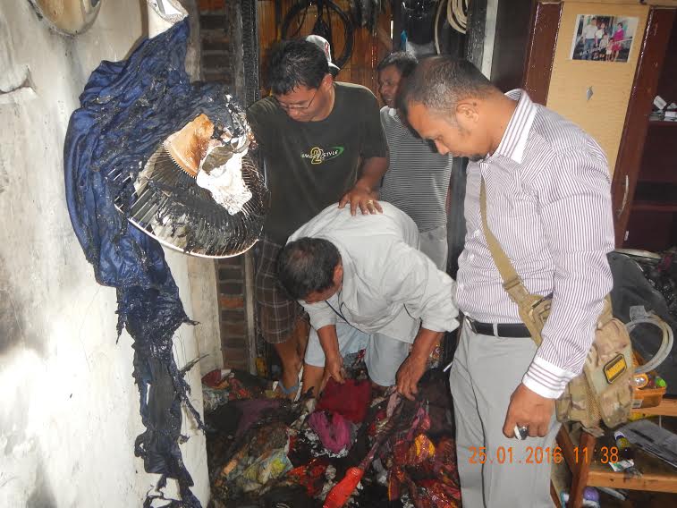 "Saat saya mau ambil, ternyata anak saya dalam keadaan menangis mengikut langkah saya masuk dalam kamar yang terbakar. Saya langsung bergegas keluar sambil menyelamatkan anak saya," tukasnya.