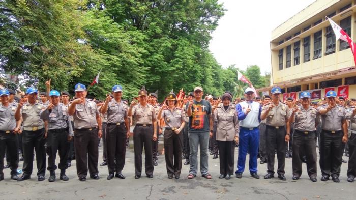 Ternyata mereka adalah para Siswa Kepolisian Negara Karombasan yang sedang mengikuti kegiatan Safety Riding Honda DAW, Sabtu (22/10) di Lapangan Koni Sario.