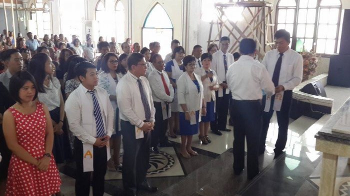 TRIBUNMANADO.CO.ID, MANADO - Memasuki tahun pelayanan 2017, Panitia HUT ke-64, Pengucapan Syukur dam Hari raya gereja Jemaat GMIM Imanuel Wanea diteguhkan dan dilantik Ketua BPMJ Pdt Roy Lengkong dalam ibadah gereja, Minggu (05/02.