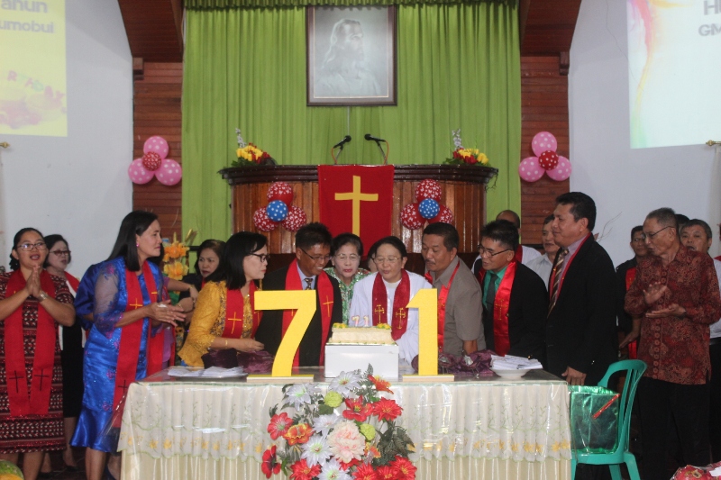 Keluarga besar Jemaat GMIBM Pniel Tumobui, Kota Kotamobagu mensyukuri penyertaan Tuhan sehingga persekutuan sebagai gereja bisa berusia 71 tahun.