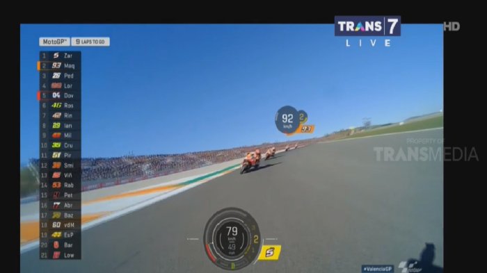 Telah berlangsung, saat ini gp valencia memasuki 15 putaran terakhir.