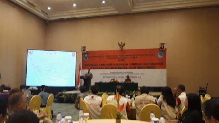 TRIBUNMANADO.CO.ID, MANADO - Kementerian Dalam Negeri (Kemendagri) RI bekerjsama dengan Badan Kesatuan Bangsa dan Politik (Kesbangpol) Sulut menggelar Dialog Publik tentang mempertahankan Pancasila, Selasa (28/11) di Hotel Peninsula Manado.
