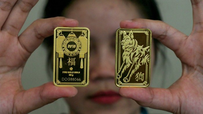 Produk emas batangan edisi khusus ini menampilkan gambar shio anjing tanah.