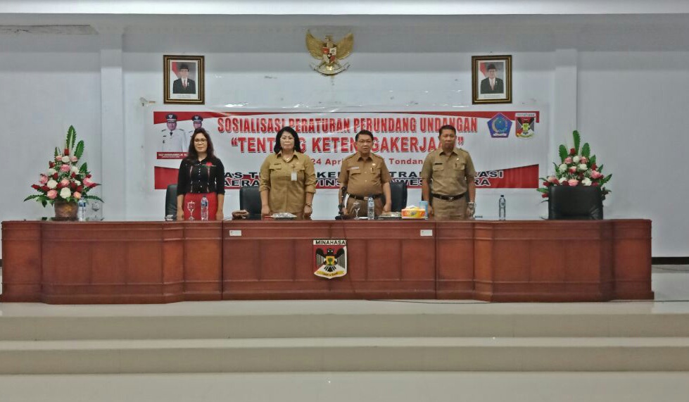 Sosialisasi Peraturan Perundang-Undangan tentang Ketenagakerjaan, Selasa (24/4/2018), di Ruang Sidang Kantor Bupati Minahasa.
