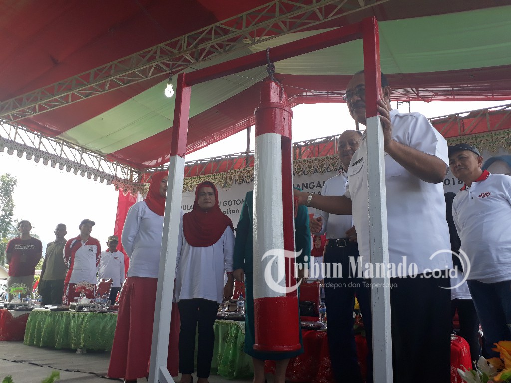 TRIBUNMANADO.CO.ID, KOTAMOBAGU - Asisten 1 Bidang Pemerintahan dan Kesejakteraan Rakyat Provinsi Sulawesi Utara Edison Humiang, buka pencanangan bulan bakti gotong royong (BBGRM) XV tahun 2018 di lapangan Mogolaing, Kecamatan Kotamobagu Barat, Kamis (26/4/2018).