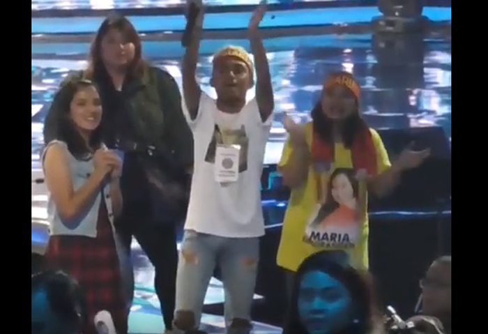 "Maria Idol, Maria Idol, Maria pasti Juaranya, lalala lalala," teriak puluhan pendukung fanatik Maria yang dipicu dua orang pendukung di atas panggung.