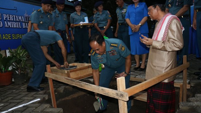 KASAL Laksamana TNI Ade Supandi melakukan peletakkan batu pertama pembangunan renovasi Masjid Amirul Bahri di Lantamal VIII