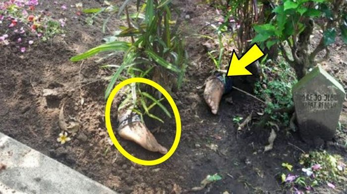 TRIBUNMANADO.CO.ID-Menyembulnya kaki dari kuburan menghebohkan warga Desa Tegowangi, Kecamtan Plemahan, Kediri, Jawa Timur, Kamis (17/5/2018).