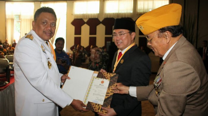 Penghargaan ini diserahkan Gubernur Sulut, Olly Dondokambey didampingi Ketua LVRI Sulut Kolonel (purn) Boyke Kambey di sela pertemuan bersama anggota LVRI di eks Kantor DPRD Sulut, usai upacara bendera peringatan proklamasi kemerdekaan, Jumat (17/08/2018).
