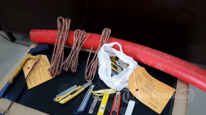 Selain 39 orang yang telah ditangkap, Polres Bolmong juga menyita enam karung tembaga yang sudah dikupas, kendaraan mobil Xenia hitam nomor polisi DB 1628 MI, satu buah gergaji besi, delapan buah pisau cutter dan mata pisau, serta potongan-potongan kulit kabel.
