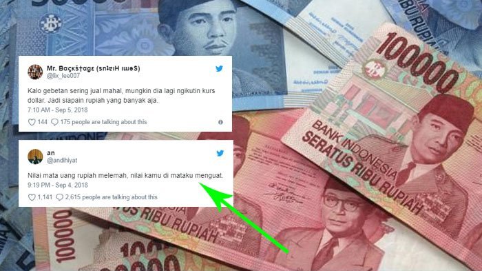 Berikut ini tweet-tweet baper netizen merespon melemahnya nilai tukar rupiah seperti dilansir Tribunstyle.com dari Twiiter. Rabu (5/9/2018).