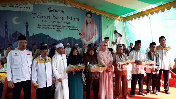KOTAMOBAGU, TRIBUNMANADO.CO.ID - Wali Kota Kotamobagu Ir Hj Tatong Bara, Selasa (11/9/2018) pagi menyerahkan zakat kepada 310 mustahak atau orang miskin dan pantas menerima zakat.