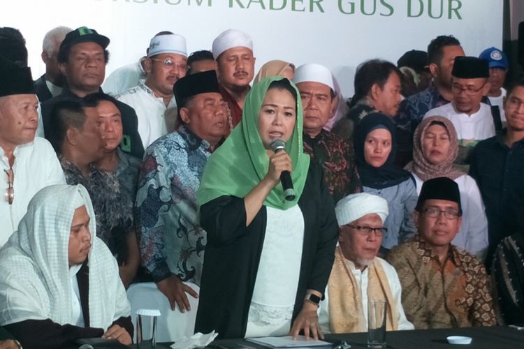 Deklarasi dukungan dibacakan putri kedua Gus Dur, Yenny Wahid, di Rumah Pergerakan Politik Gus Dur, Jalan Kalibata Timur I No 12, Kalibata, Jakarta Selatan.
