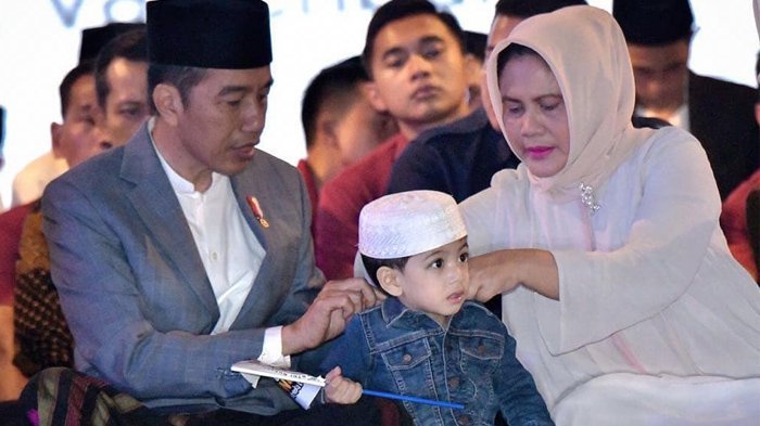 Begitu Jokowi tiba, pandangan mereka tertuju kepada sosok cucu pertamanya yang ia gandeng.