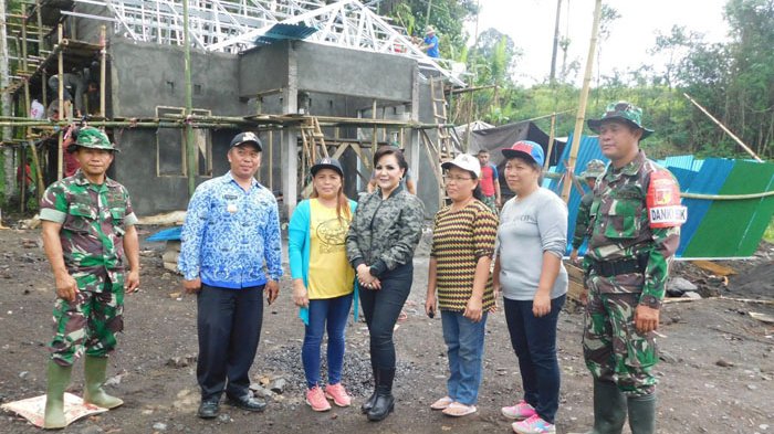 Wakil Wali Kota Tomohon Sherly Adelyn Sompotan menyambangi lokasi TMMD di Kelurahan Pongolombian dan memberikan spirit kepada anggota satgas TMMD