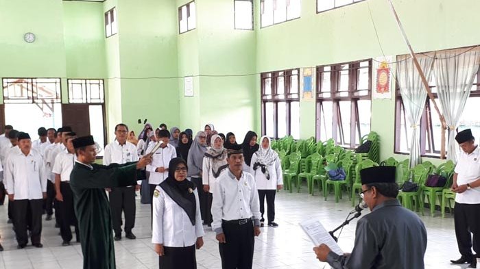LOLAK, TRIBUNMANADO.CO.ID - Kakanwil Kemenag Sulut Abdul Rasyid melantik dan mengambil sumpah jabatan Kepala Madrasah di lingkungan Kemenag Bolmong, Rabu (31/10), di Aula MTsN 2 Bolmong, Desa Mopuya, Kabupaten Bolaang Mongondow.