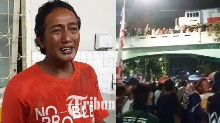 Para penonton pun saling dorong hingga ada yang terjatuh dari atas viaduk.
