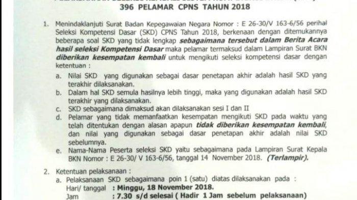 "Sebanyak 396 pelamar CPNS Kotamobagu diberikan kesempatan kembali untuk mengikuti seleksi kompetensi dasar dengan berbagai ketentuan," ujar Kepala BKPP Kotamobagu Sahaya Mokoginta kepada Tribunmanado.co.id, Jumat (16/11/2018) pukul 18.10 Wita.