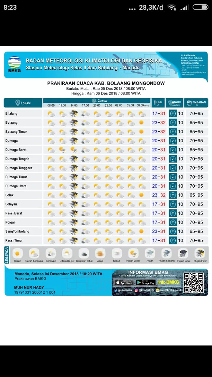 TRIBUNMANADO.CO.ID, LOLAK - Cuaca terkini di wilayah Kabupaten Bolaang Mongondow (Bolmong), Rabu (05/12/2018), dari Badan Penanggunglangan Bencana Daerah (BPBD) Bolmong terpantau cerah berawan.