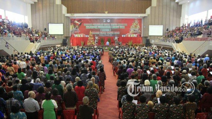 TRIBUNMANADO.CO.ID, MINAHASA - Gubernur Sulawesi Utara (Sulut) Olly Dondokambey dalam sambutannya yang disampaikan oleh Kepala BAPPEDA Provinsi Sulut Ricky Toemandoek dalam acara Ibadah Perayaan Natal Yesus Kristus Kelompok Fungsional Lanjut Usia (Lansia) Sinode GMIM Tahun 2018 di Gedung Wale Ne Tou mengajak para lansia untuk selalu hidup rukun dan damai, Minggu (09/12/2018).