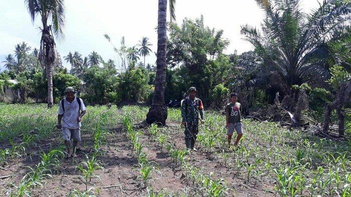 TRIBUNMANADO.CO.ID, LOLAK - Babinsa Koramil 1303-10/Poigar Serda Ramli, membantu kelompok tani (Poktan) Moonow melakukan penyemprotan rumput (gulma) pada tanaman jagung, yang bertempat di Desa Poigar III Kecamatan Poigar Kabupaten Bolmong pada lahan seluas 1,5 hektar Sabtu (08/12/2018).