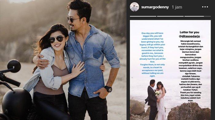Dilansir Tribunmanado.co.id, dari akun Instgram pribadi @sumargodenny, Jumat (14/12/2018), Denny menjadikan foto preweddingnya bersama Dita Soedarjo sebagai background tulisannya.