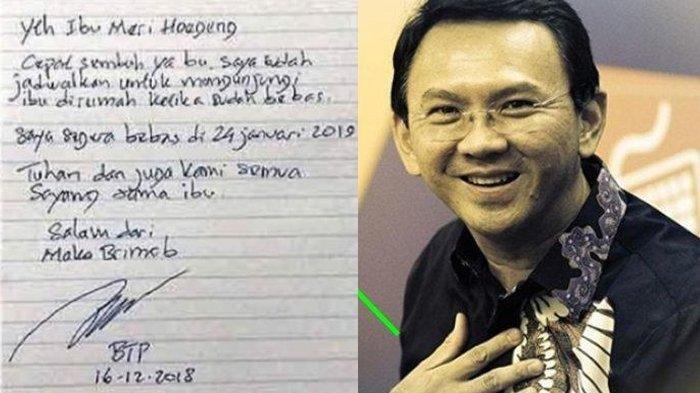 Dalam surat itu, Ahok menyebut akan mengunjungi Merry setelah dia bebas dari penjara.