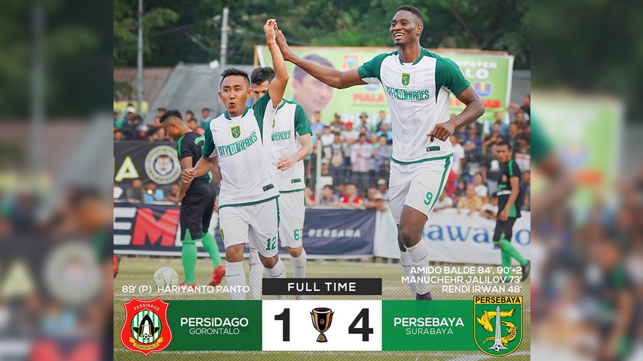 Hasil Pertandingan Piala Indonesia - Persidago vs Persebaya, Skor Akhir 1-4, Amido Balde Dua Gol!