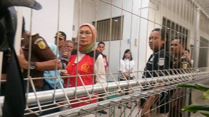 Namun, Ratna hanya menjawab dengan senyumnya hingga masuk ke ruang tunggu tahanan.