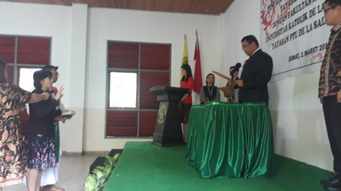 Rektor Unika De La Salle Prof Dr Johanis Ohoitimur melantik Filly sebagai ketua program studi pertama setelah Akademi Fisioterapi St Lukas Tomohon resmi bergabung di bawah naungan Unika De La Salle.