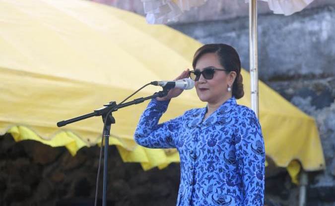 Syerly Adelyn Sompotan bertindak sebagai Pembina Apel Korpri Jajaran Pemerintah Kota Tomohon di Stadion Babe Palar, Senin(18/3/19).