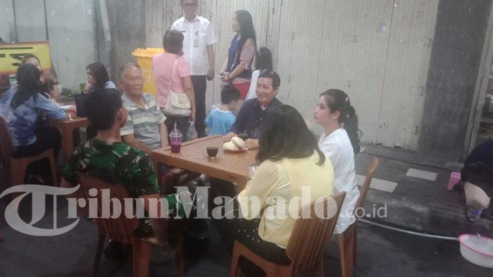 Vicky ditemani sejumlah warga, ia makan bakpao. Kehadiran orang nomor satu Manado itu barulah diketahui setelah seseorang mengumumkan lewat pengeras suara.
