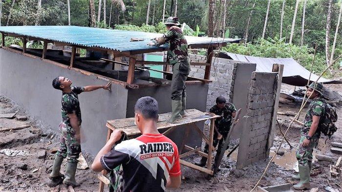 Pengerjaan atap MCK terus dipercepat pengerjaan oleh Satuan tugas (satgas) TMMD ke-104.