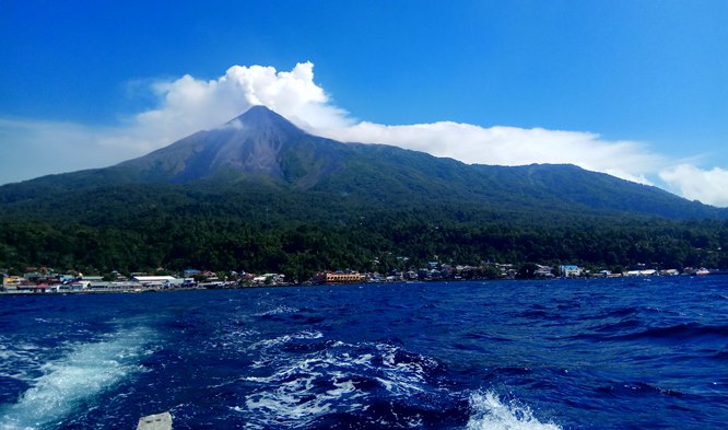 Asap Putih Tebal Masih Nampak di Puncak Gunung Karangetang