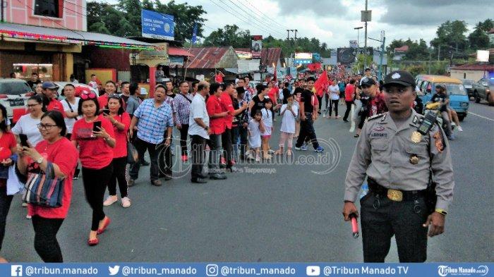 Terpantau wartawan tribunmanado.co.id, sampai pukul 18.00 Wita, massa tidak sabar lagi menjemput Joko Widodo yang maju kembali sebagai Capres nomor urut 01 ini melewati lokasi mereka menunggu.