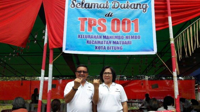 TRIBUNMANADO.CO.ID, BITUNG - Wakil Wali Kota Bitung Maurits Mantiri dan keluarga mencoblos di TPS 001 Kelurahan Manembo-nembo, Kecamatan Matuari.