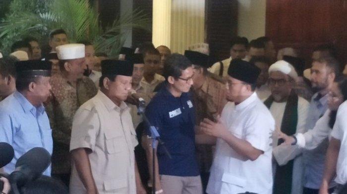Penampilan Prabowo dan Sandiaga kali ini adalah pertama kali di hadapan publik pascapemungutan suara Pemilu 2019, Rabu (17/4/2019).
