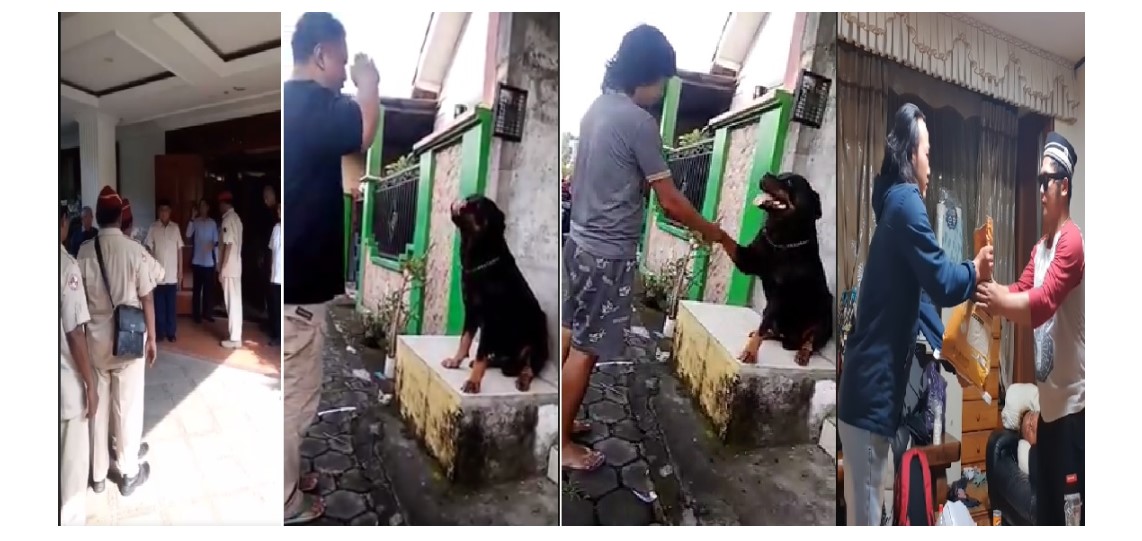 Tak hanya memberi hormat kepada sesama manusia saja, orang-orang dalam video ini juga ada yang memberi hormat ke anjing sambil mengucap siap presiden.