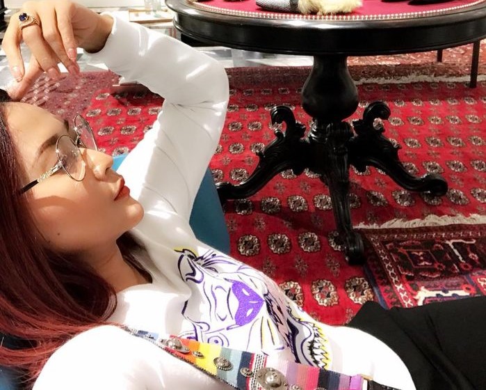 Tangannya juga tengah memegang tas cantik berwarna merah dari Dior.