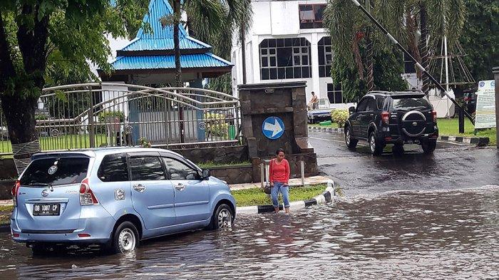 Kondisi Jalan Depan Kantor Wali Kota Usai Hujan Deras