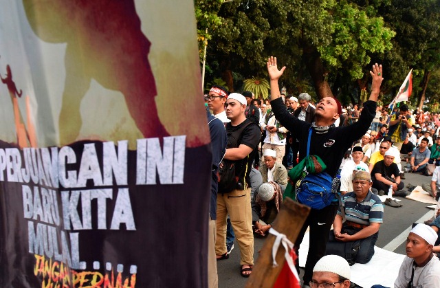 Dia melanjutkan, dirinya mengajak massa aksi agar tak jajan makanan dan minuman dari pedagang yang berada di lokasi. "Jangan juga membeli makanan atau minuman dari pedagang yang ada di sekitar sini," seru Abdullah.