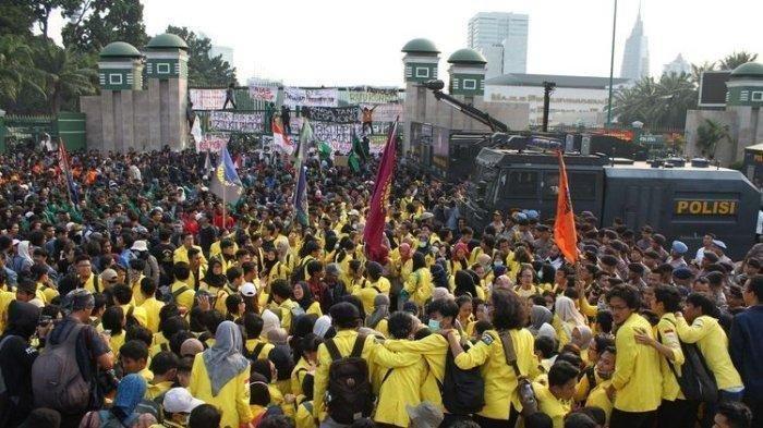 TRIBUNMANADO.CO.ID - Demo mahasiswa di depan gedung DPR/MPR RI terus berlanjut hingga sore ini.