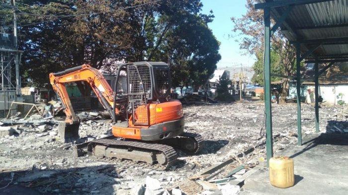 Proses pembongkaran gedung sisa puing puing kebakaran hari ini dilaksanakan dengan menggunakan eksakavator, sasarannya yaitu empat buah gedung yang terbakar, agar segera bisa memulai pengerjaan pembangunan gedung baru.