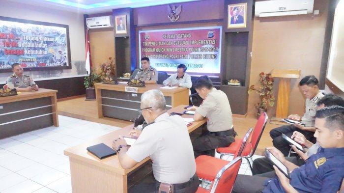 Kunjungan kerja tim Analis Puslitbang Polri untuk melaksanakan penelitian dan evaluasi terhadap pelaksanaan program Quick Wins Polri di Polres Bitung.