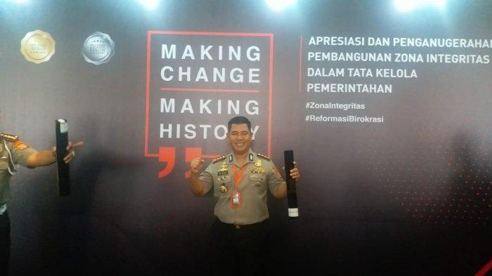 TRIBUNMANADO.CO.ID - Kapolresta Manado Kombes Pol Benny Bawensel, menerima piagam penghargaan dari Menteri Pendayagunaan Aparatur Negara dan Reformasi Birokrasi, sebagai pelopor perubahan pembangunan Zona Integritas (ZI), menuju Wilayah Bebas dari Korupsi (WBK), di Lingkungan Kepolisian Negara Republik Indonesia tahun 2019.