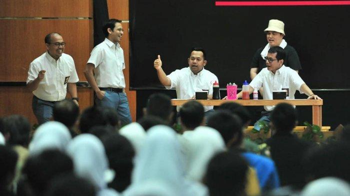 Ledekan Erick Thohir lantas mengundang tawa dari Bedu, Wishnutama dan penonton pentas tersebut.